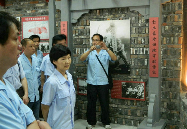 伴隨著淅瀝小雨,所有黨員在烈士紀(jì)念館前集合,在烈士紀(jì)念館工作人員的帶領(lǐng)下,隨即開始了正式參觀。烈士紀(jì)念館里,陳列著許多珍貴的歷史文物,有革命烈士使用過(guò)的步槍、手榴彈、刺刀等,仿真的場(chǎng)景和人物蠟像,生動(dòng)地展示了當(dāng)時(shí)革命的艱苦歲月。一件件珍貴的遺物,一張張模糊的照片,一段段翔實(shí)的文字,讓我門腦海中那模糊的艱難歲月再一次清晰起來(lái)。