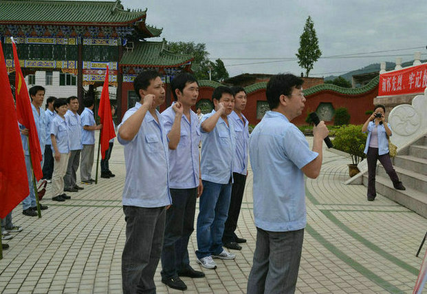 7月1日清晨,空氣中彌漫著陣雨過(guò)后的清新和涼爽,鮮艷的黨旗在正奧公司的操場(chǎng)上迎風(fēng)飄揚(yáng),是那么的紅、那么的美!一百多名黨員在的操場(chǎng)上聚集,他們意氣風(fēng)發(fā),整裝待發(fā)。7點(diǎn)30分,大家依序登上了赴鄖西的大巴。一路上,黨員們歡歌笑語(yǔ),百余名黨員用發(fā)自內(nèi)心的聲音,高唱《走在大路上》《打靶歸來(lái)》《十送紅軍》等歌曲,大家以飽滿的熱情、激昂的歌聲,唱出了對(duì)黨的無(wú)限熱愛、對(duì)祖國(guó)和人民的無(wú)比忠誠(chéng),唱出了祝福,唱出了喜悅,唱出了真情。車滾滾,歌聲嘹亮,天朗朗,豪情萬(wàn)丈!洪亮的歌聲隨奔馳的客車飄向了遠(yuǎn)方,在巍巍的大山中久久回蕩,不知不覺間,我們走到了上津古鎮(zhèn)。